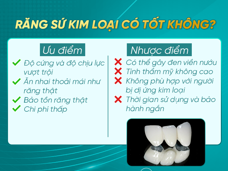Răng sứ kim loại hiện nay ít được khuyến khích cho phục hình thẩm mỹ vùng trước.